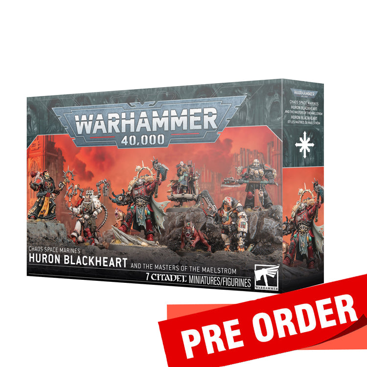 This multipart plastic kit builds Huron Blackheart and his closest lieutenants for your Chaos Space Marines armies in games of Warhammer 40,000. Huron is resplendent in his modified armour, wielding the legendary Tyrant's Claw, holding a deadly power axe aloft, and accompanied by the Hamadrya. At his side fight his most loyal warriors. Garreon the Corpsemaster is the Lord-Apothecary of the Red Corsairs, and Katar Garrix is the grim Headsman. Garlon Souleater is the Tyrant's most powerful sorcerer, while Captain Sargotta is the commander of his flagship. The Enforcer is a single-minded stalker who fights alongside her pet, Plunder. They each bring a set of individual abilities to your force, ensuring that you’ll maintain control of the Maelstrom, while the characterful miniatures make for an impressive painting project.